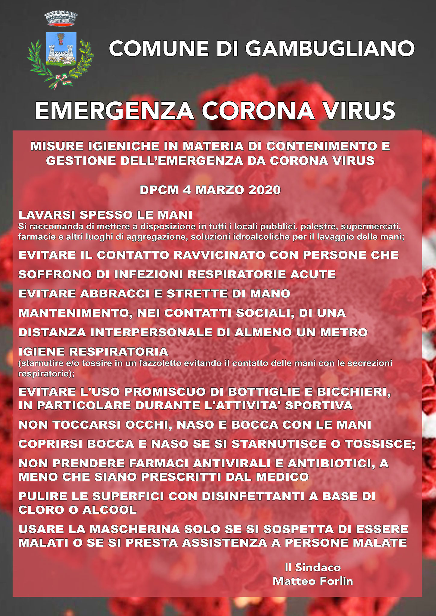 EMERGENZA CORONAVIRUS - SINTESI DPCM 4 MARZO 2020 - Da leggere e diffondere