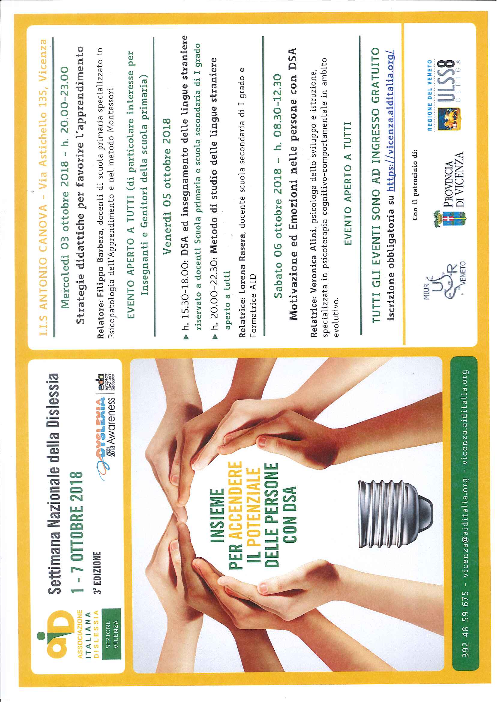 L' Associazione Italiana Dislessia sezione provinciale di Vicenza organizza la terza edizione della "Settimana della Dislessia" dal 01 al 07 ottobre 2018